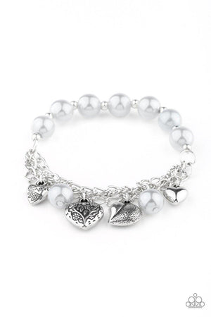 More Amour Silver Heart Stretch Bracelet - Paparazzi Accessories