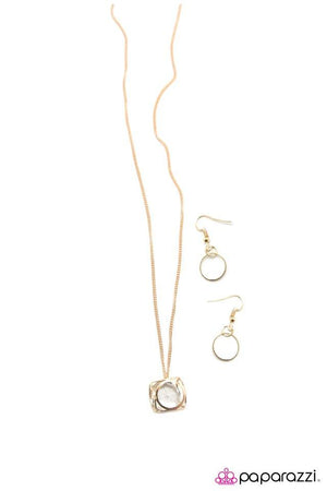 Pandora's Box Gold Necklace and matching Earrings - Paparazzi Accessories