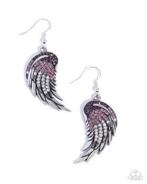 Angelic Appeal Purple & White Rhinestone Angel Wing Earrings - Paparazzi Accessories
