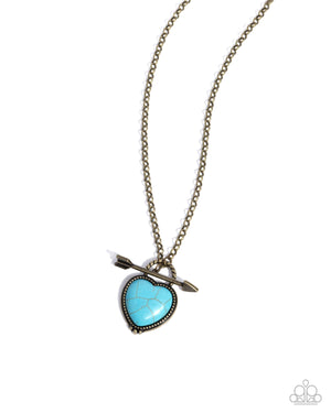 Artful Arrow Brass & Turquoise Stone Heart Necklace - Paparazzi Accessories