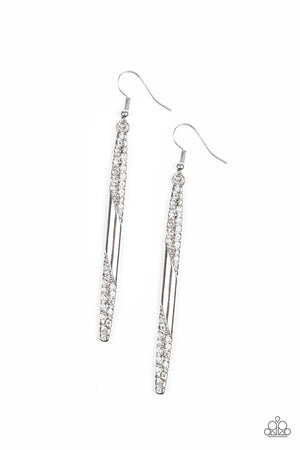 Award Show Attitude Silver and White Earrings - Paparazzi Accessories