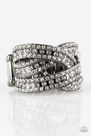 Back On The Glitter Track Gunmetal Black and White Rhinestone Ring - Paparazzi Accessories