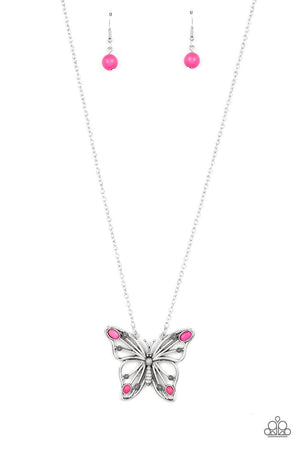 Badlands Butterfly Pink Stone Necklace - Paparazzi Accessories