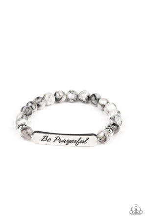 Be Prayerful Black and White Stone Inspirational Stretch Bracelet - Paparazzi Accessories