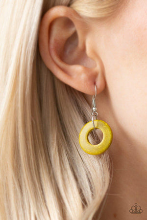 Boardwalk Party Yellow and Brown Wood Necklace - Paparazzi Accessories