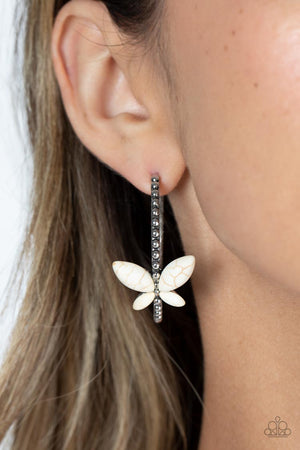 Bohemian Butterfly White Stone Hoop Earrings - Paparazzi Accessories