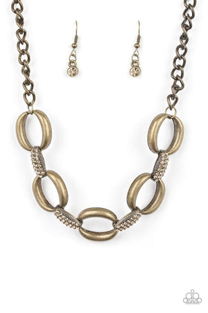Boss Boulevard Brass and Rhinestone Chain Link Necklace - Paparazzi Accessories