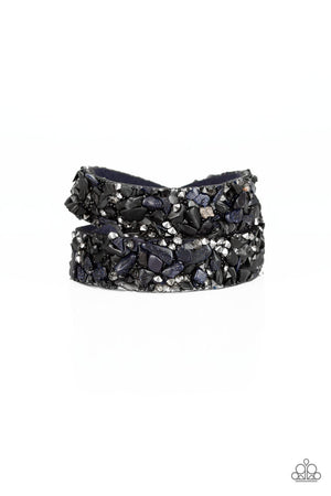Crush Hour Blue Suede and Stone Double Wrap Snap Bracelet - Paparazzi Accessories