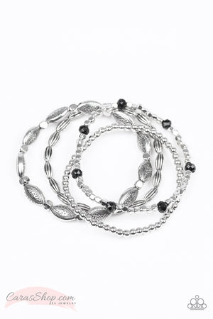 Full of WANDER Silver and Black Stretch Bracelet Set - Paparazzi Accessories