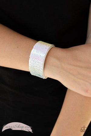 Mer-mazingly Mermaid Pink and Silver Reversible Sequin Wrap Snap Bracelet - Paparazzi Accessories