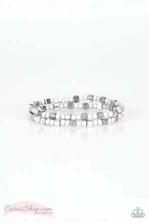 Trendy Tribalist Gray and Silver Stretch Bracelet Set - Paparazzi Accessories