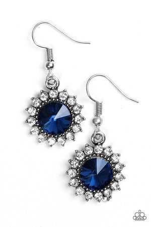 Bring In The Beam Team Sapphire Blue and White Earrings - Paparazzi Accessories