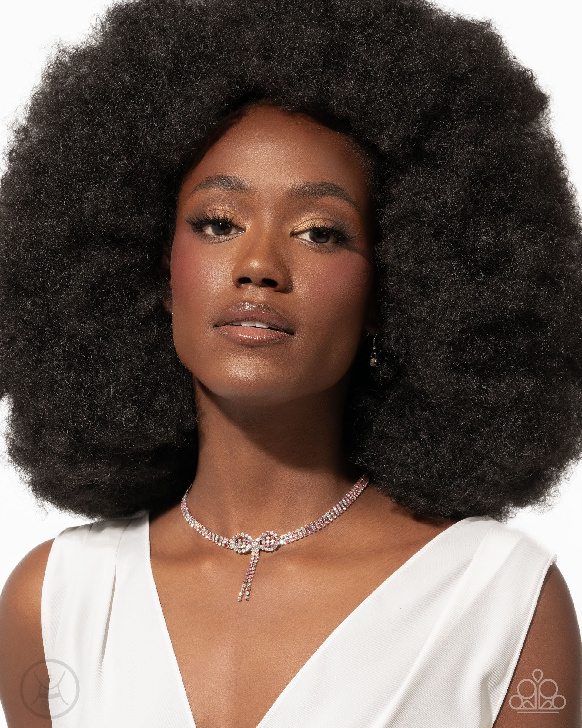 Buckingham Bow Pink Rhinestone Choker Necklace - Paparazzi Accessories