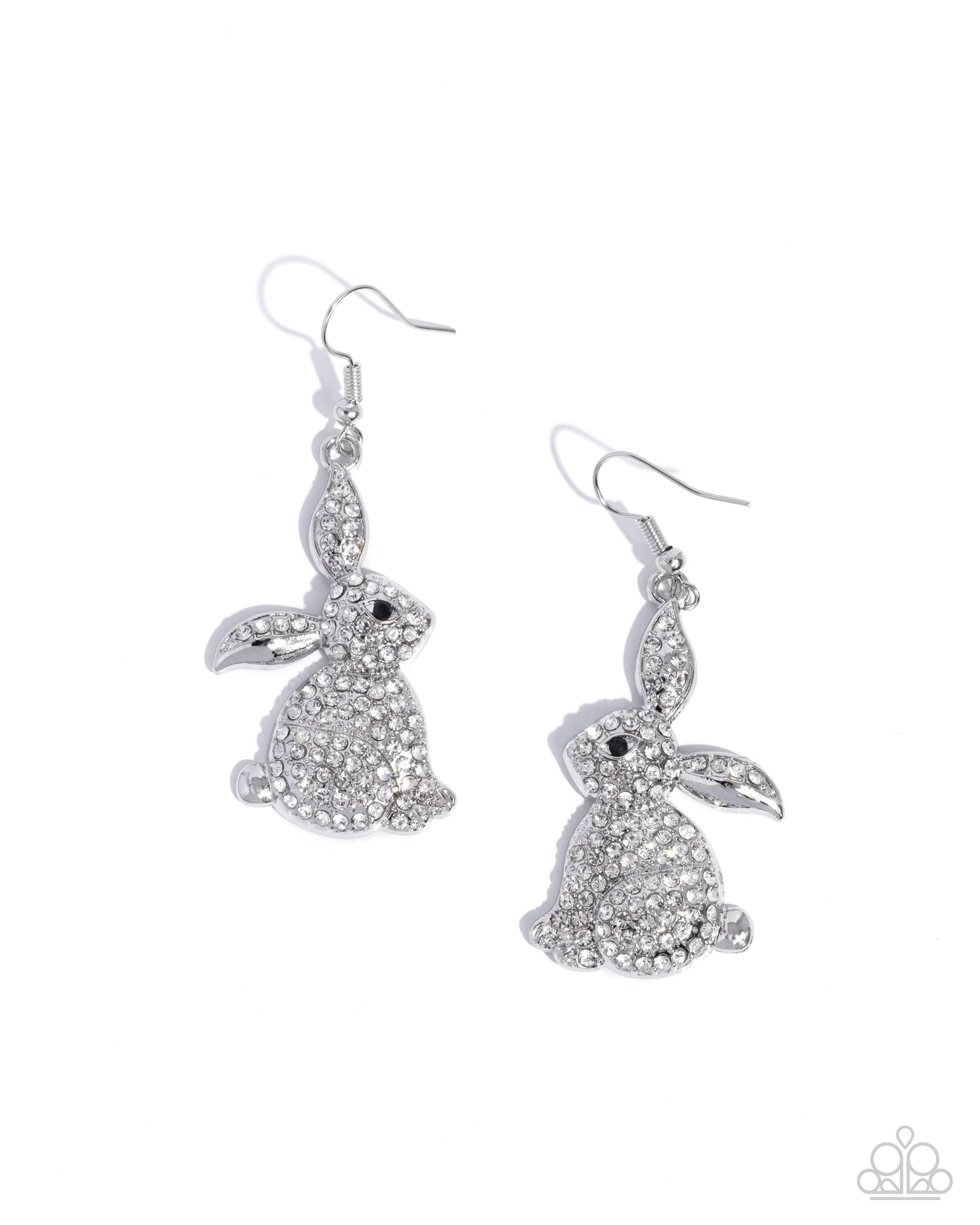 Bunny Bling White Rhinestone Rabbit Earrings - Paparazzi Accessories