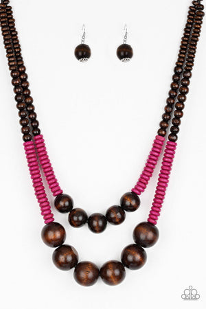 Cancun Cast Away Pink and Brown Wood Necklace - Paparazzi Accessories