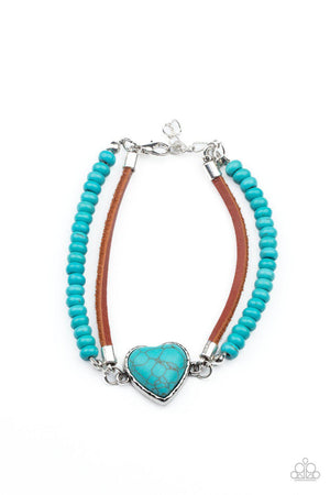 Charmingly Country Turquoise Blue Stone Heart Bracelet - Paparazzi Accessories