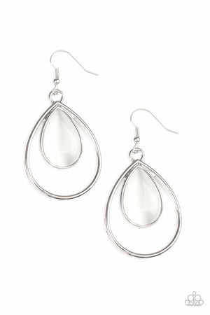 Color Me Cool White Cat's Eye Earrings - Paparazzi Accessories