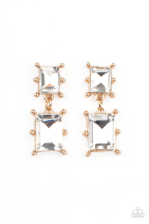 Cosmic Queen Gold & White Rhinestone Earrings - Paparazzi Accessories