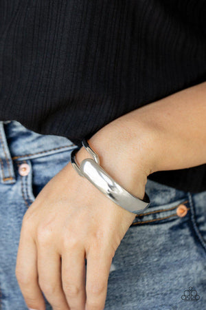 Couture-Clutcher Silver Hinged Bracelet - Paparazzi Accessories