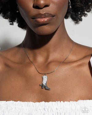 Cowboy Confidence White Boot Charm Necklace - Paparazzi Accessories