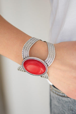 Coyote Couture Red Stone and Silver Cuff Bracelet - Paparazzi Accessories