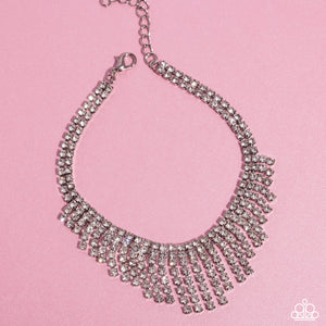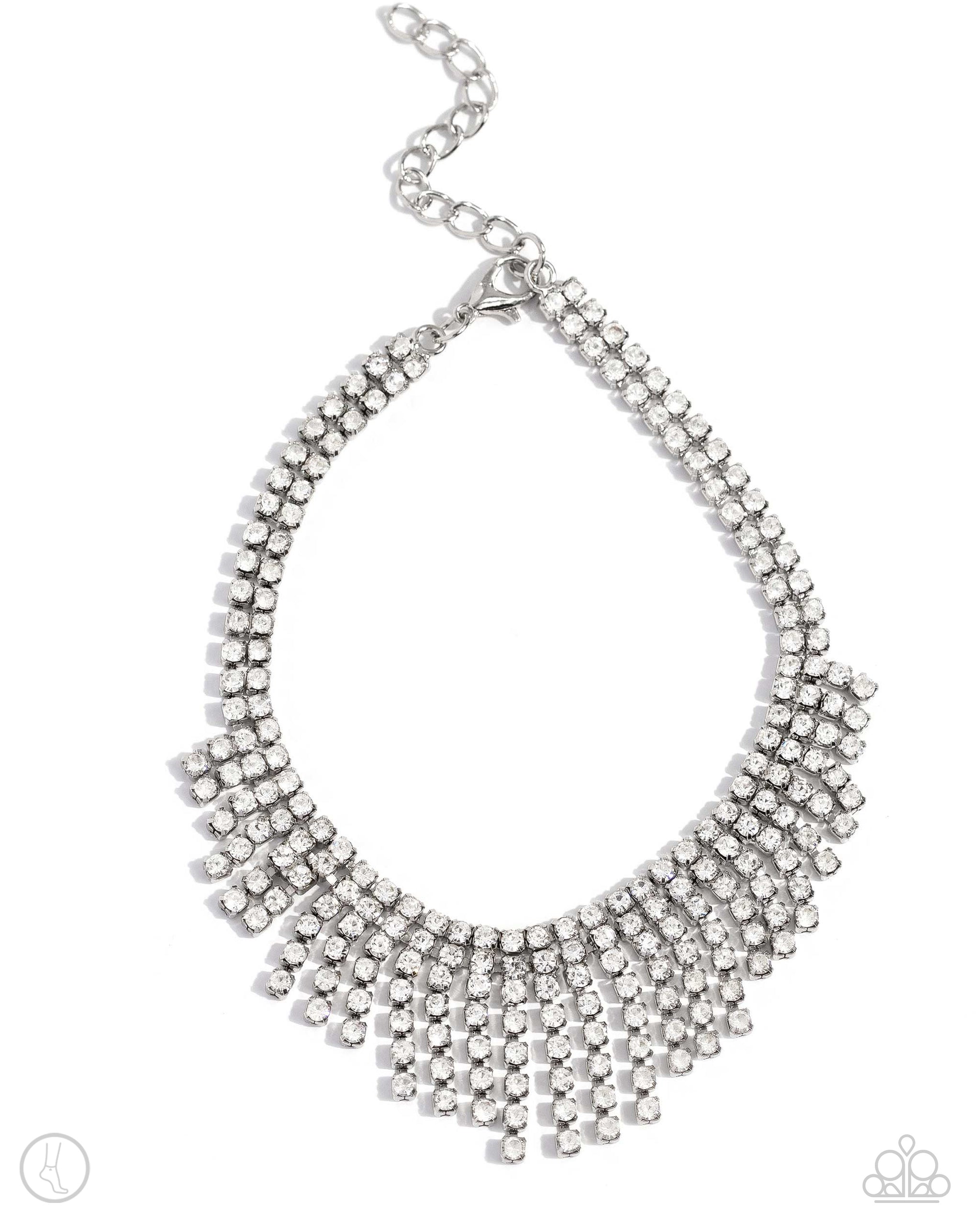 Curtain Confidence White Rhinestone Anklet - Paparazzi Accessories