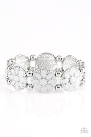 Dancing Dahlias Silver Bracelet - Paparazzi Accessories