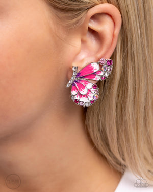 Decadent Descent Pink Butterfly Clip-on Earrings - Paparazzi Accessories