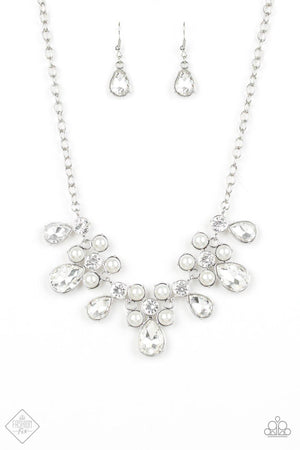 Demurely Debutante White Pearl and Rhinestone Necklace - Paparazzi Accessories