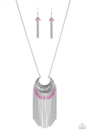 Desert Coyote Long Pink and Silver Fringe Necklace - Paparazzi Accessories