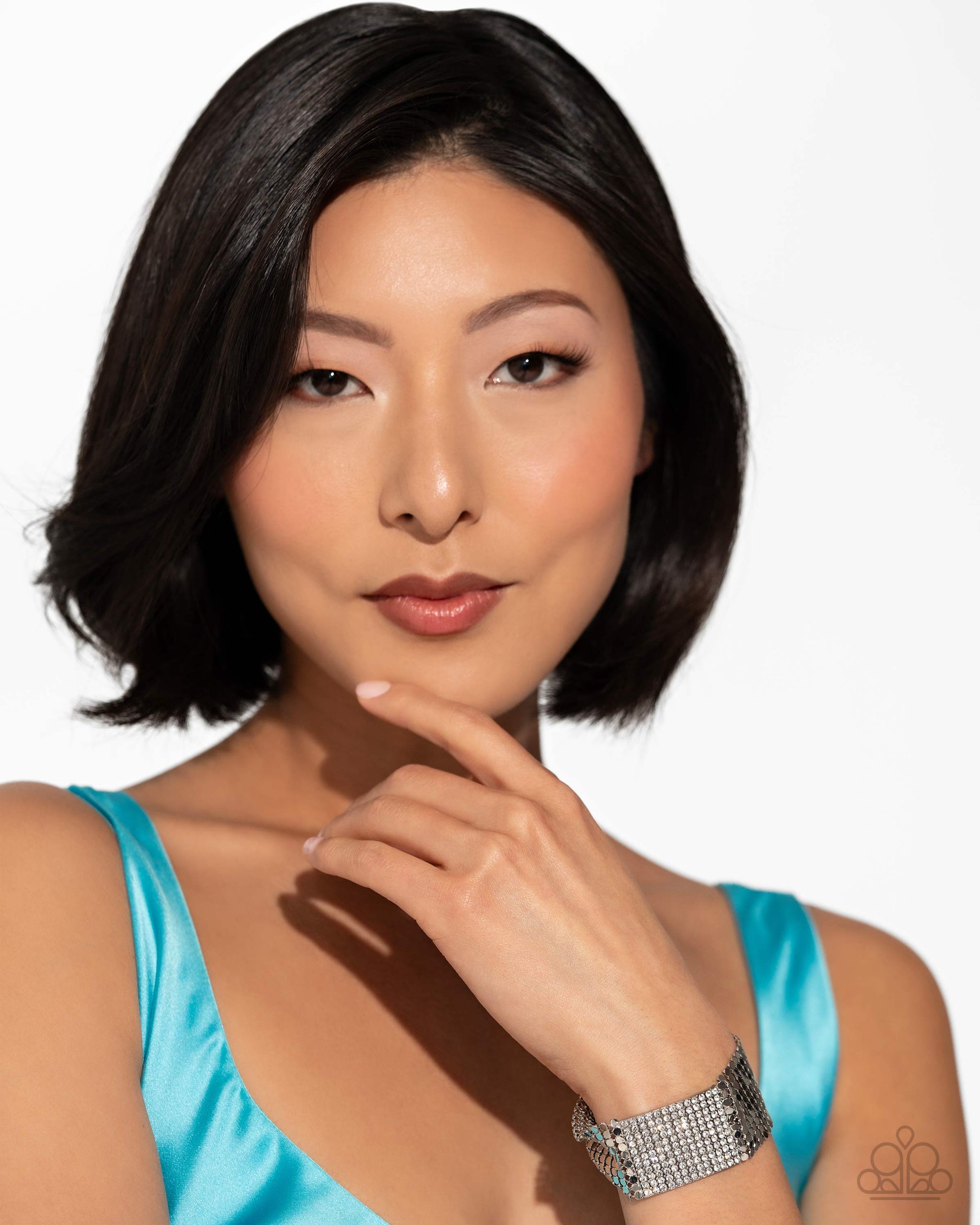 Disco Dame White Rhinestone & Silver Bracelet - Paparazzi Accessories