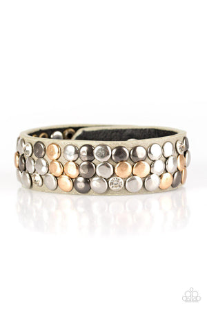 Don't Step On A Crack Gray Leather Urban Wrap Snap Bracelet - Paparazzi Accessories