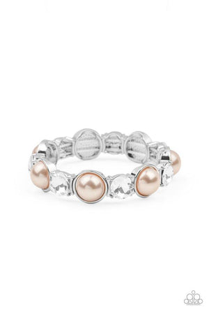 Elegant Entertainment Brown Pearl and White Rhinestone Bracelet - Paparazzi Accessories