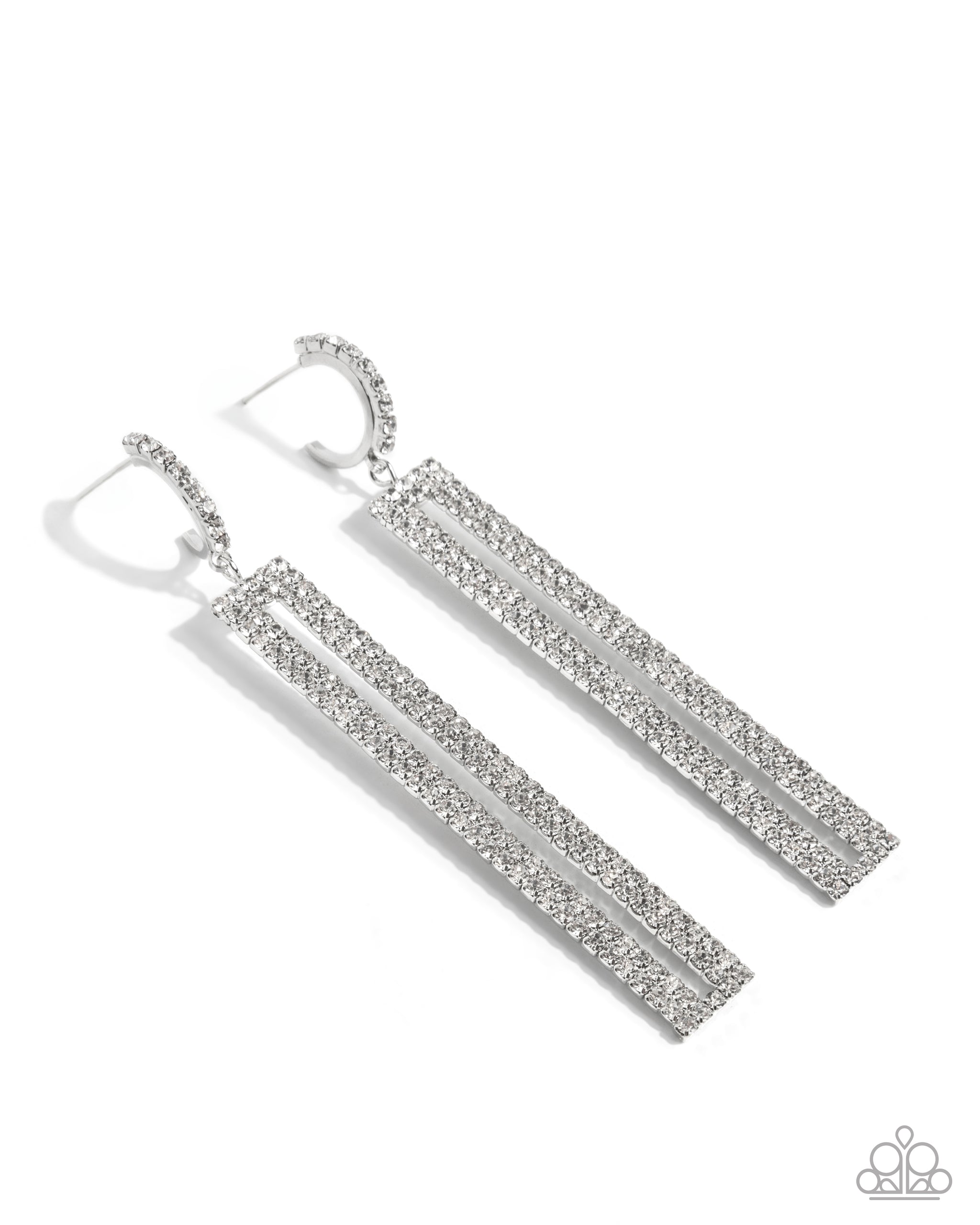 Elongated Ease White Rhinestone Earrings - Paparazzi Accessories
