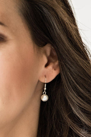 Eloquently Eloquent Silver and White Pearl Lanyard Necklace - Paparazzi Accessories