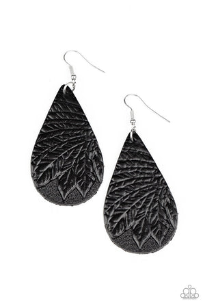 Everyone Remain PALM! Black Leather Earrings - Paparazzi Accessories