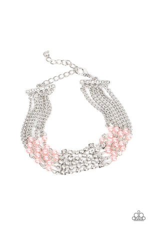 Experienced in Elegance Pink Pearl & White Rhinestone Bracelet - Paparazzi Accessories