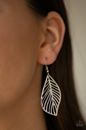 Feathery Foliage Silver and Yellow Necklace and matching Earrings - Paparazzi Accessories