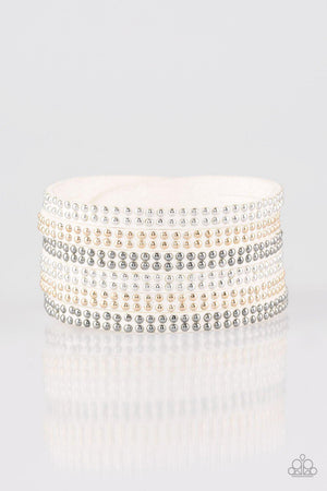 Fight Fire With Fire White Silver and Gold Urban Wrap Snap Bracelet - Paparazzi Accessories