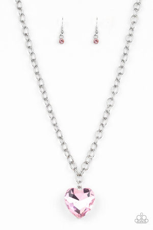 Flirtatiously Flashy Pink Rhinestone Heart Necklace - Paparazzi Accessories