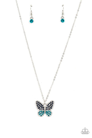 Flutter Forte Blue Rhinestone Butterfly Necklace - Paparazzi Accessories