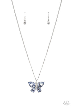 Free-Flying Flutter Blue Rhinestone Butterfly Necklace - Paparazzi Accessories