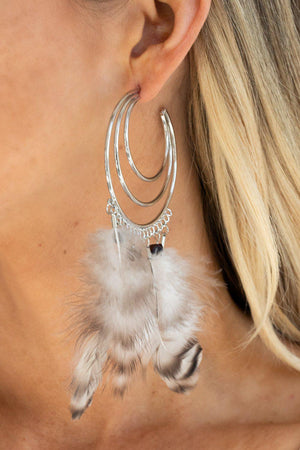 Freely Free Bird Brown Feather and Silver Hoop Earrings - Paparazzi Accessories