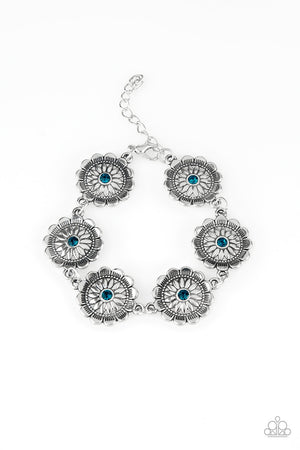 Funky Flower Child Blue and Silver Flower Bracelet - Paparazzi Accessories
