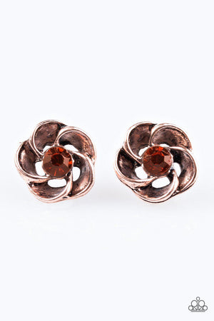 Gardenia Variety Copper Flower Post Earrings - Paparazzi Accessories