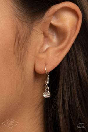 Featuring a raw cut and metallic backing, an iridescent gem swings from the bottom of an elongated silver popcorn chain. Dotted with a dainty white rhinestone, the faceted gem catches and refracts the light for a blinding finish. Features an adjustable clasp closure.