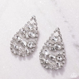 Giant Glitter White Rhinestone Earrings - Paparazzi Accessories