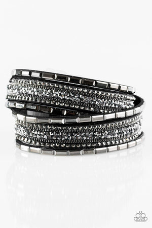 Glam Goals Black and Hematite Rhinestone Double-wrap Snap Bracelet - Paparazzi Accessories