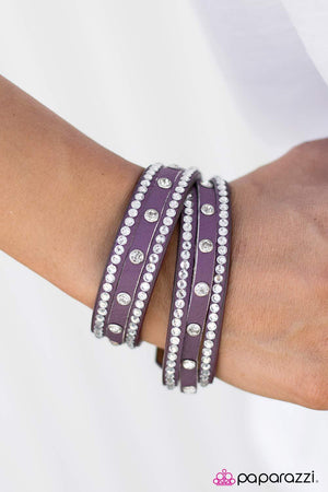 Glitter Band Purple and White Rhinestone Double-wrap Snap Bracelet - Paparazzi Accessories