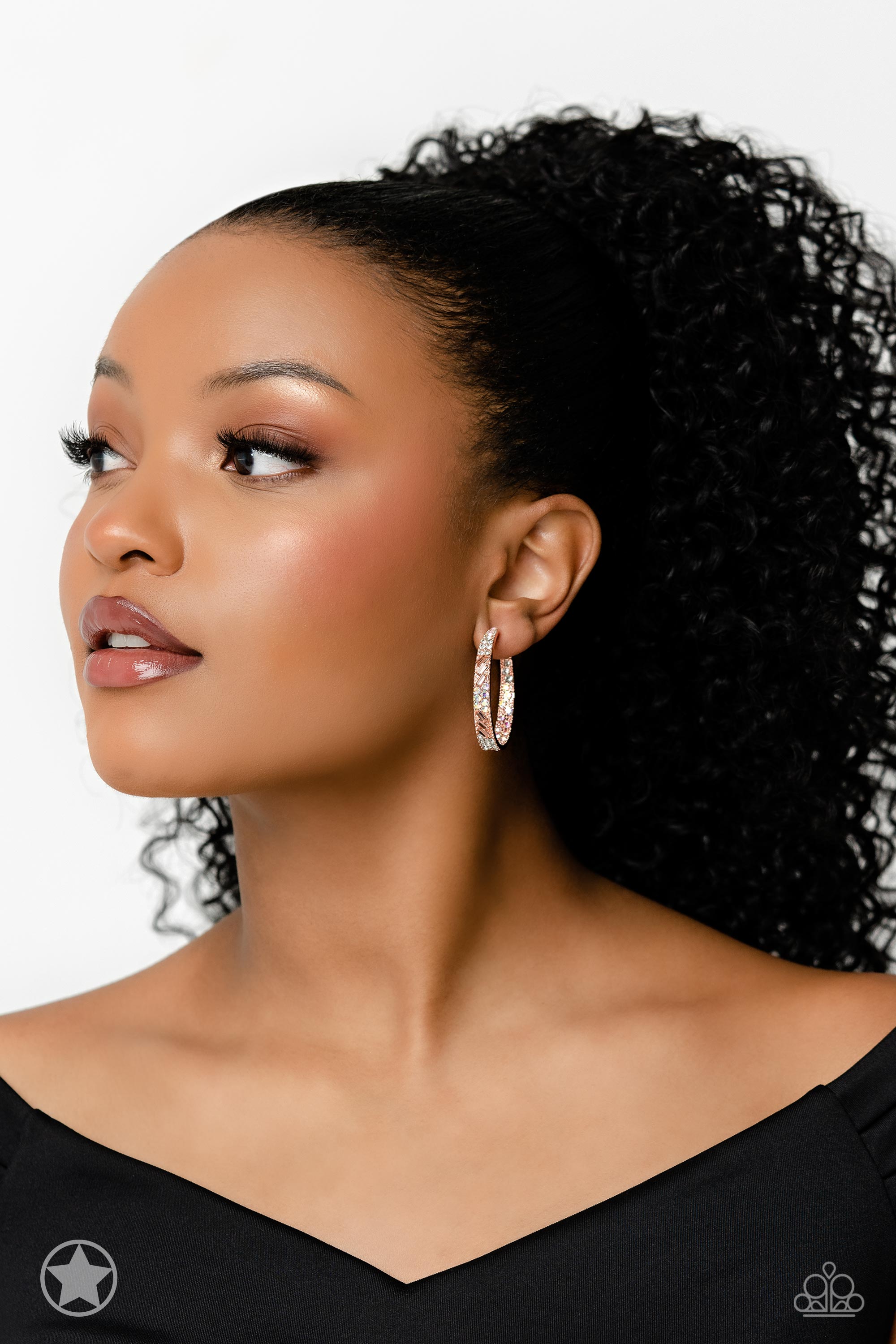 Glitzy by Association Copper & White Rhinestone Hoop Earrings - Paparazzi Accessories